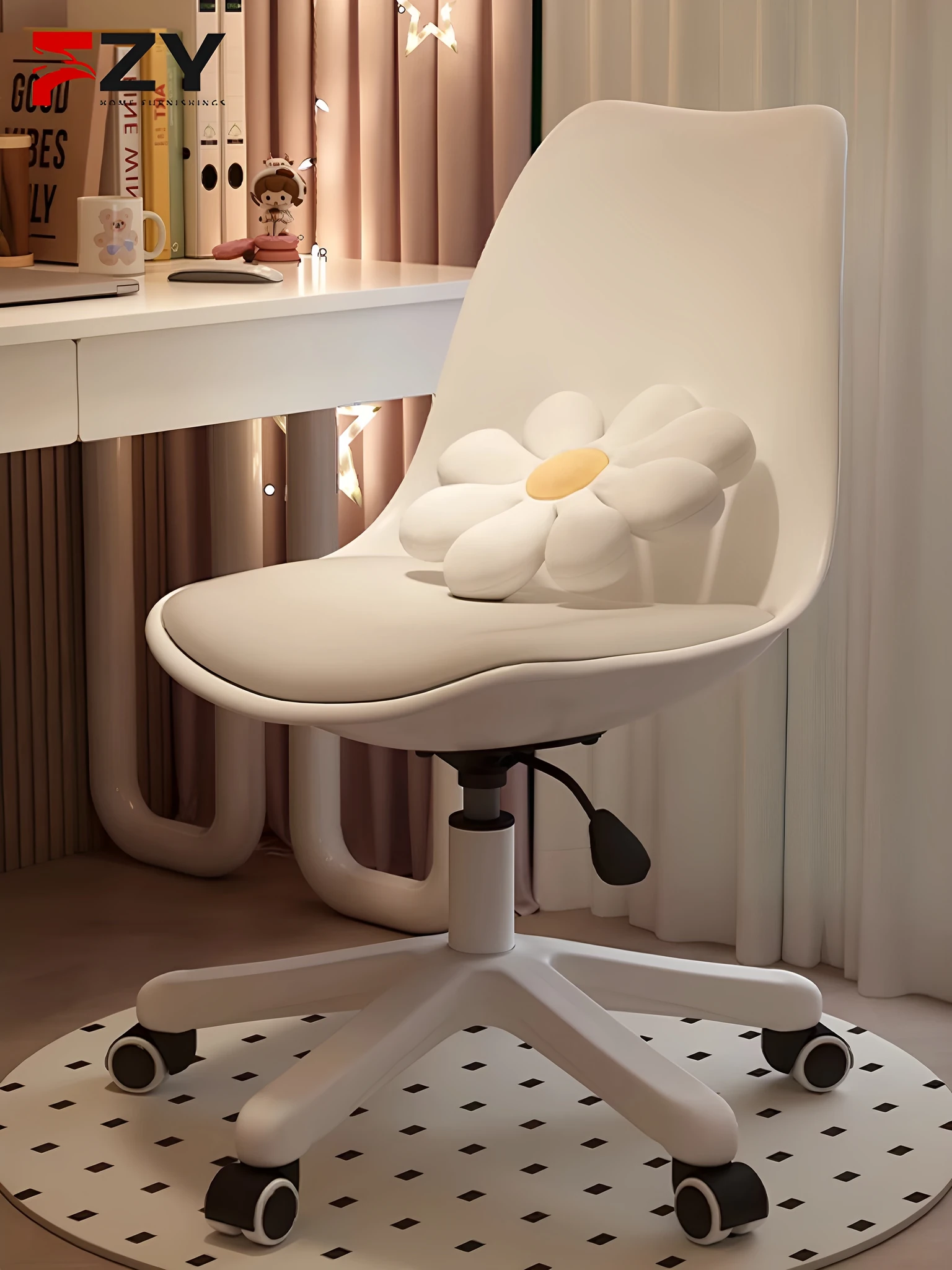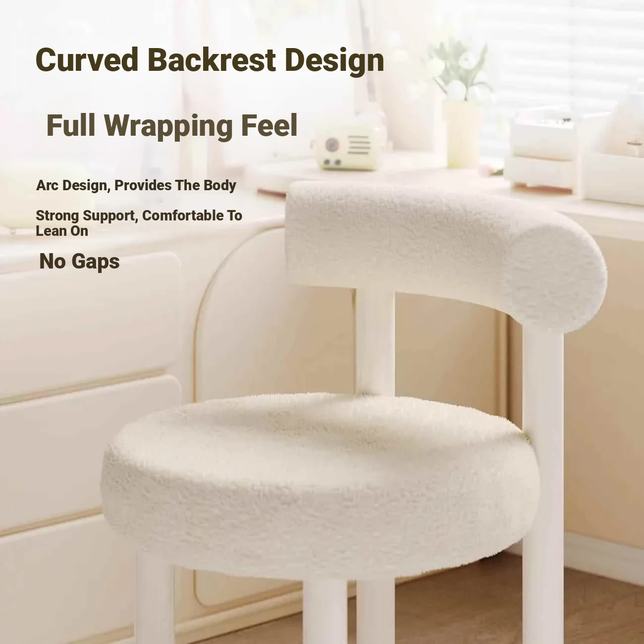 Elegant Petal Makeup Chair for Home and Bedroom - Stylish Vanity Stool with Backrest for Women, Perfect for Makeup and Nail Art - Minimalist Luxury Design