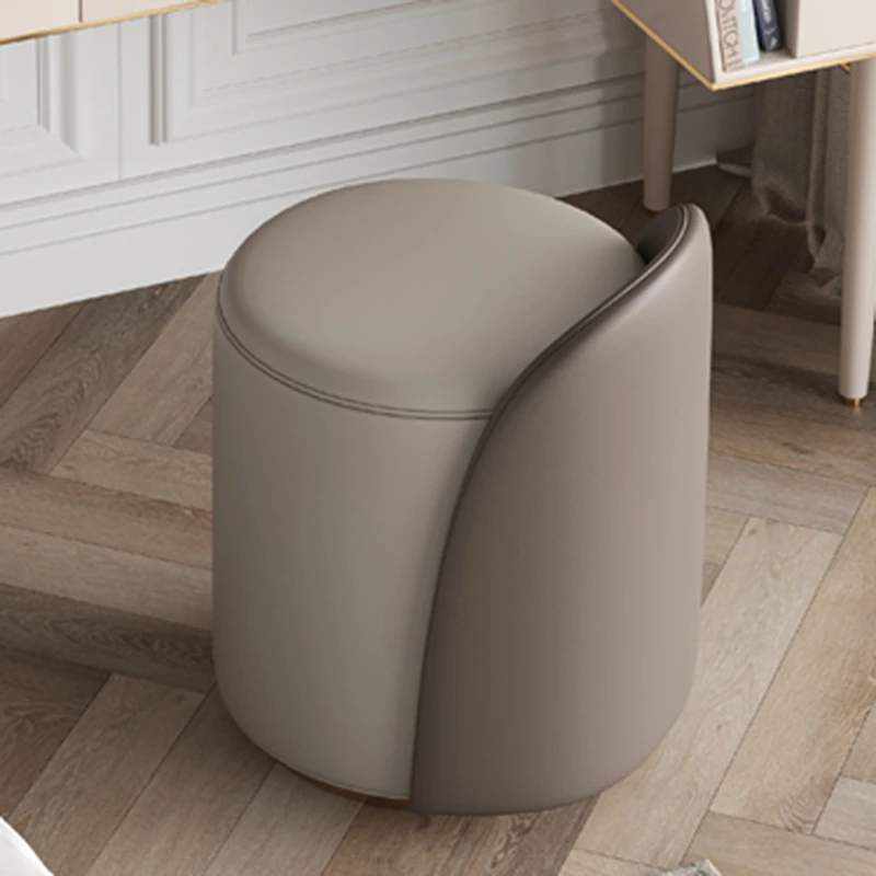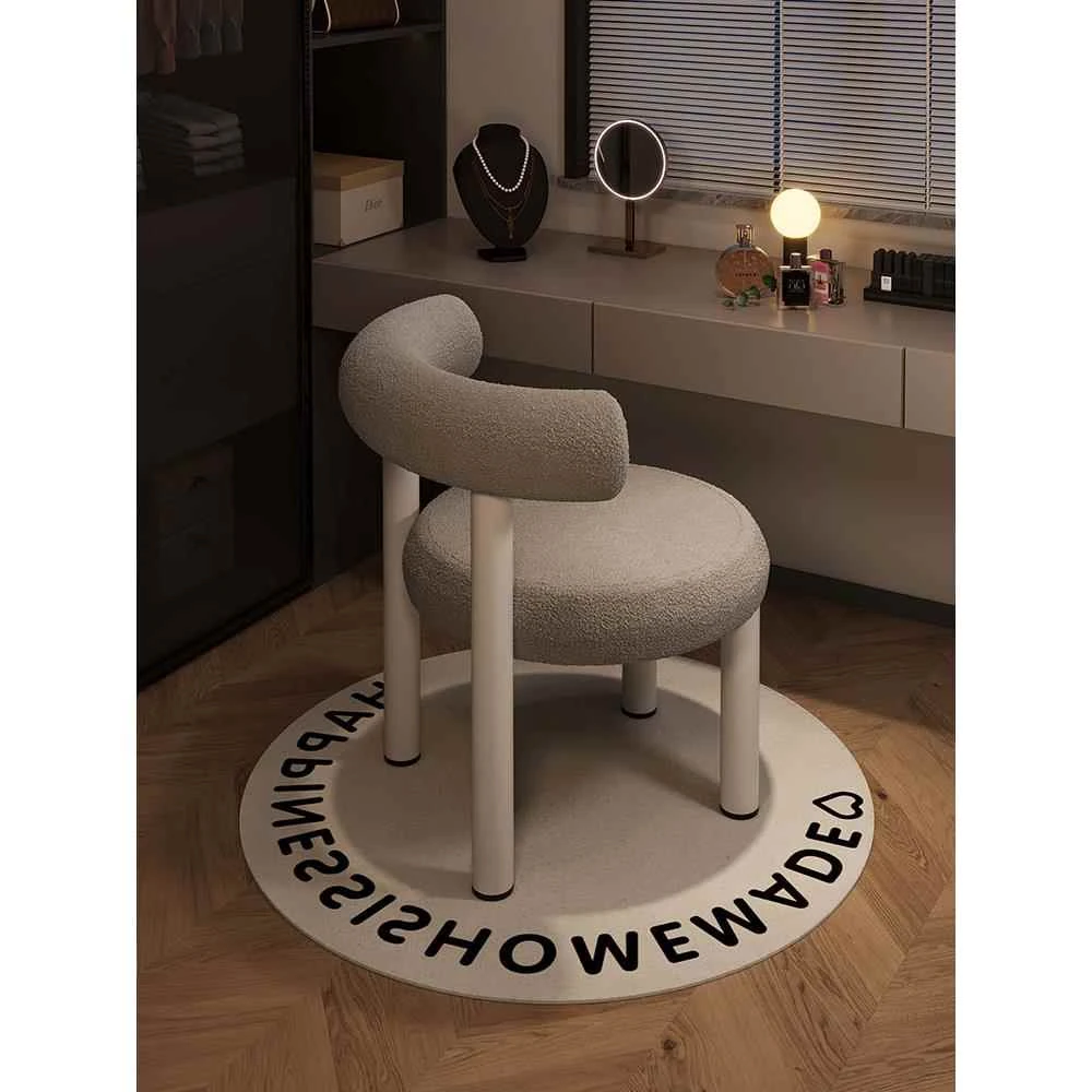 Nordic Minimalist Makeup Chair with Leather Backrest - Modern Round Vanity Stool for Bedroom, Trendy INS Style Makeup Stool