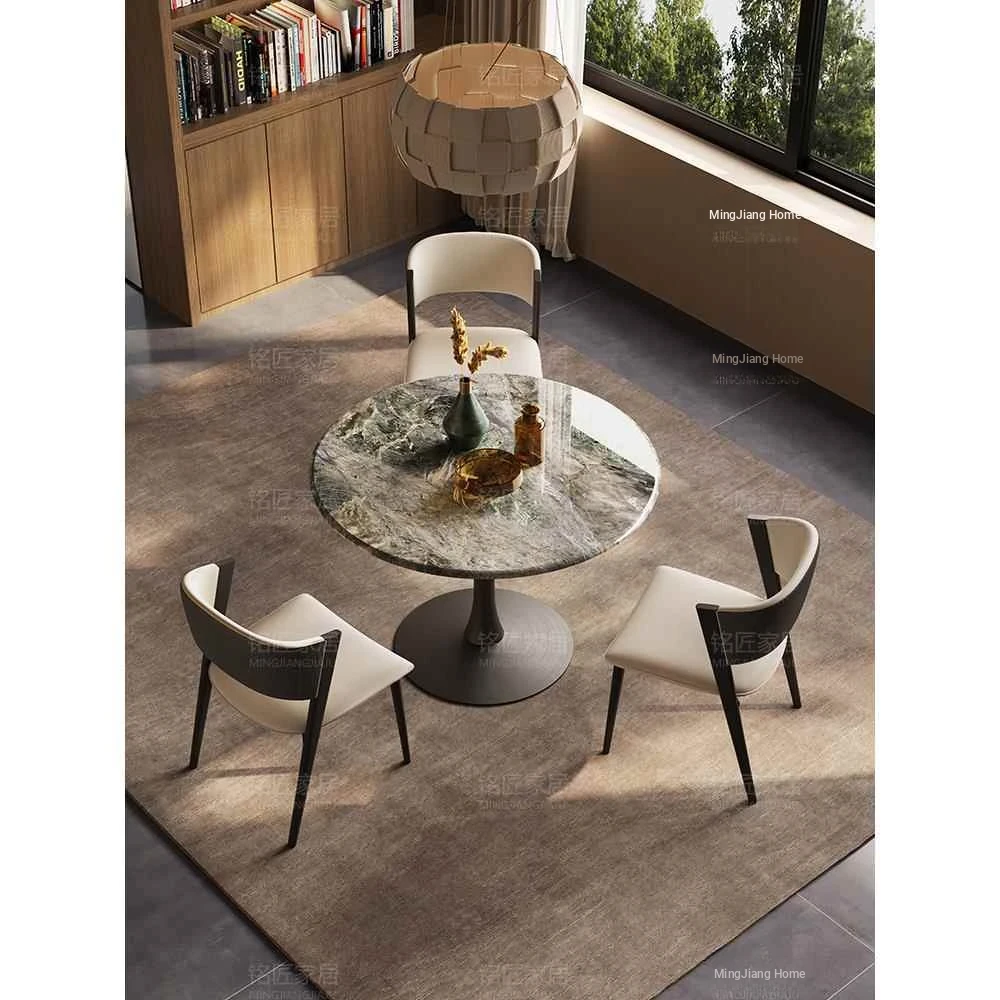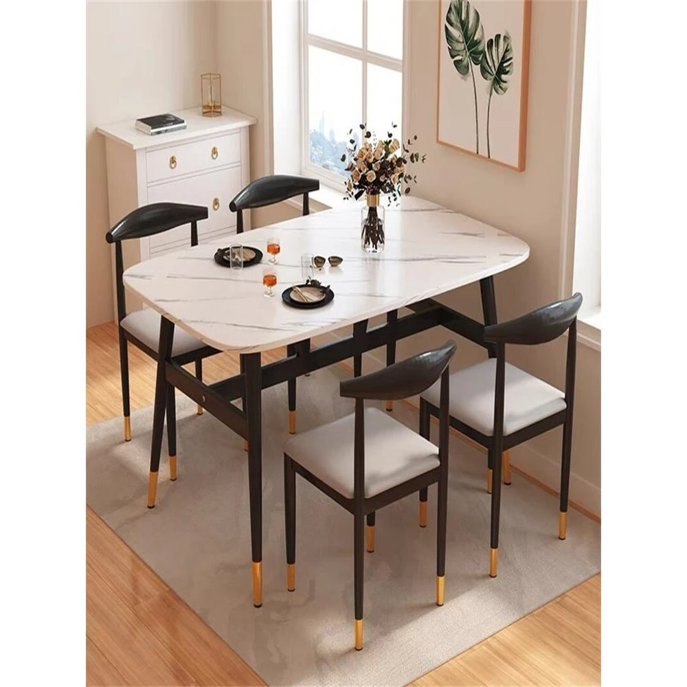 Modern Minimalist Light Luxury Glossy Rock Dining Table Set - Rectangular Marble Table with Chairs for Small Spaces, Perfect for Home Use