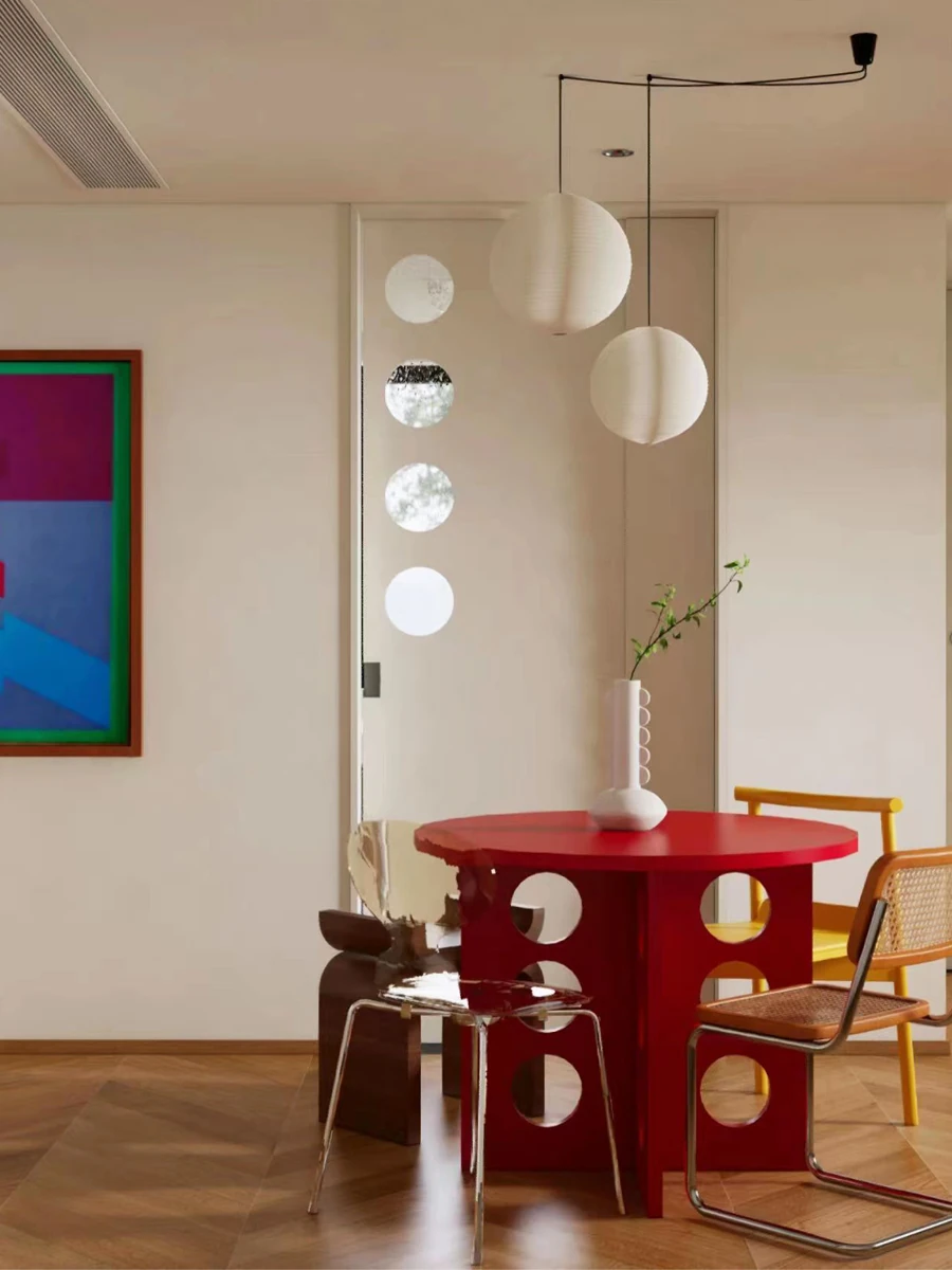 Modern Minimalist Round Dining Table for Small Spaces - Memphis Colorful Designer Table for Home & Café, Perfect for Contemporary Interiors