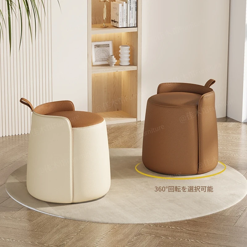本革製メイクアップスツール|モダンでシンプルなデザイン|家庭用ラウンドスツール|寝室用ドレッサースツール|人気の無垢材製ティーテーブルスツールで、あなたの空間をスタイリッシュに演出!