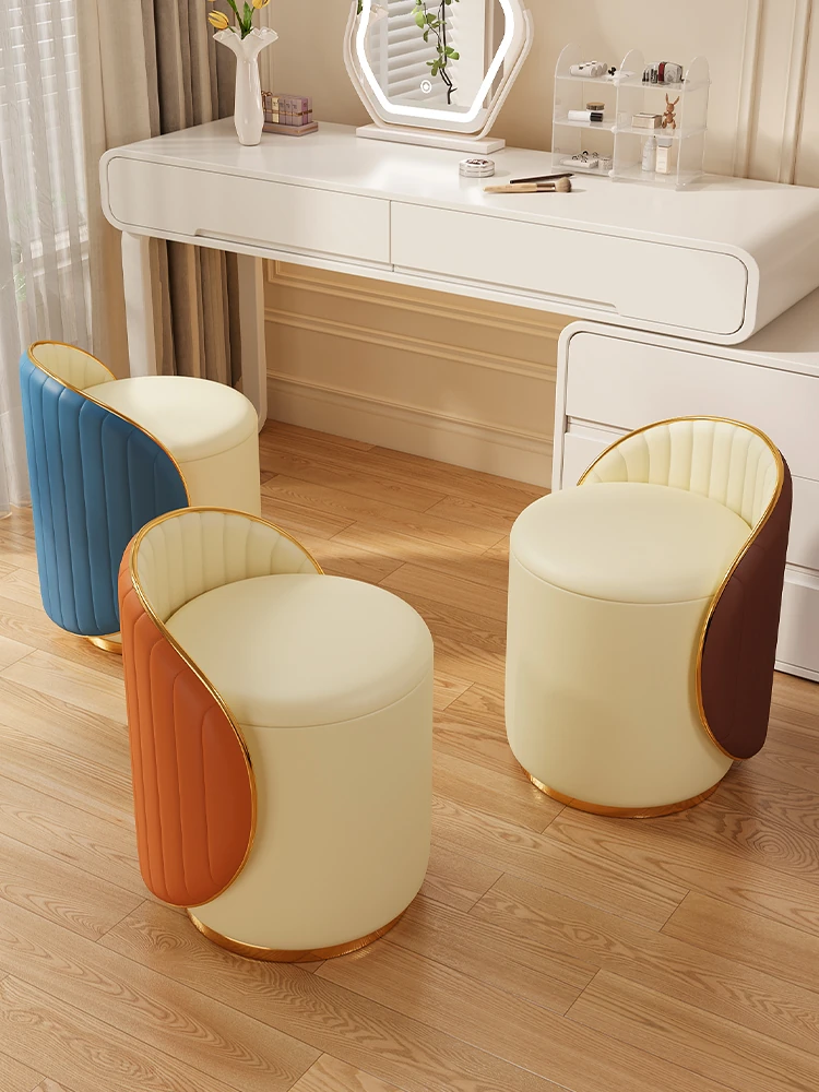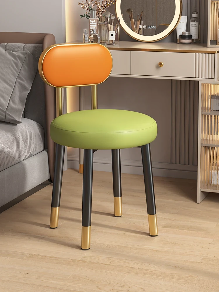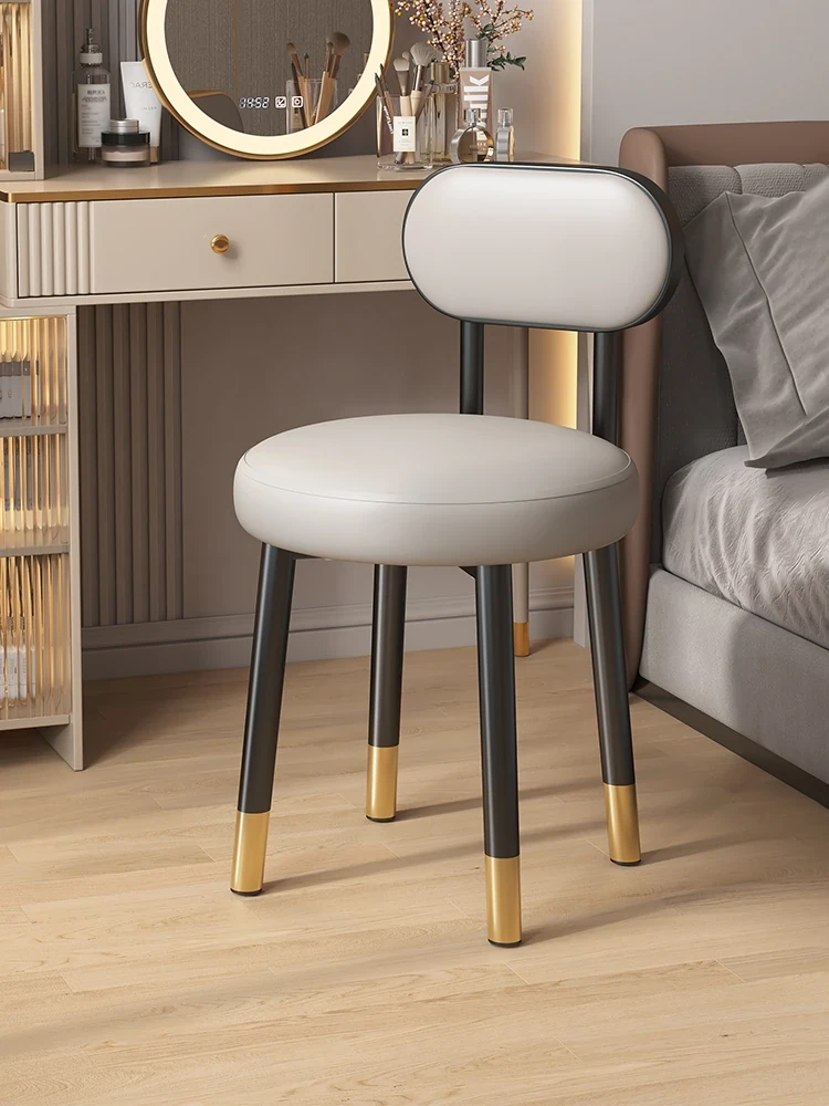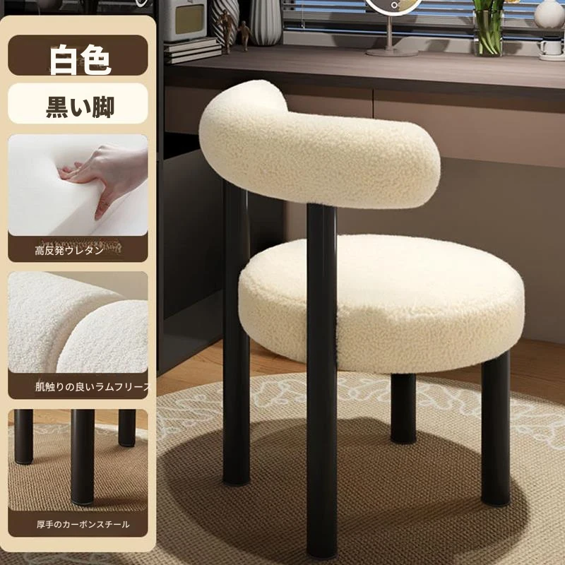 軽やかな高級感の化粧椅子!女性の寝室にぴったりなスタイリッシュなドレッサー用チェア。背もたれ付きで快適、家庭用や小型ダイニングテーブルにも最適な円形スツール!あなたの空間に華やかさをプラスします。