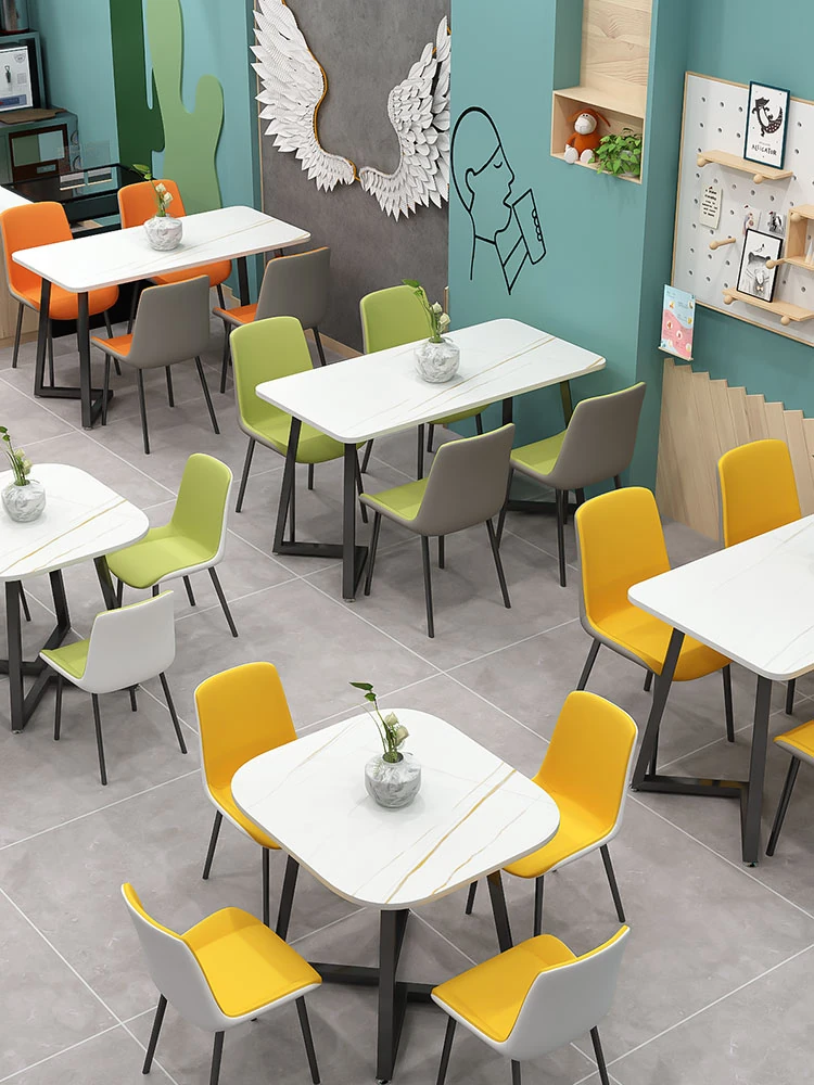 ファーストフード用テーブルセット|スイーツ&ミルクティーに最適な飲食店用長方形テーブルと椅子|小吃やラーメン店、バーベキュー店にもぴったり!快適でスタイリッシュなデザインで、どんなシーンにもマッチします。