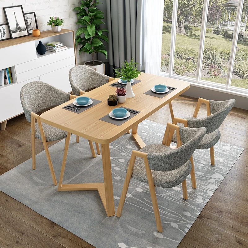北欧スタイルのシンプルでモダンなダイニングテーブル&チェアセット - 4人用・6人用、家族や友人との食事に最適な長方形デザイン、小スペースにもぴったり!
