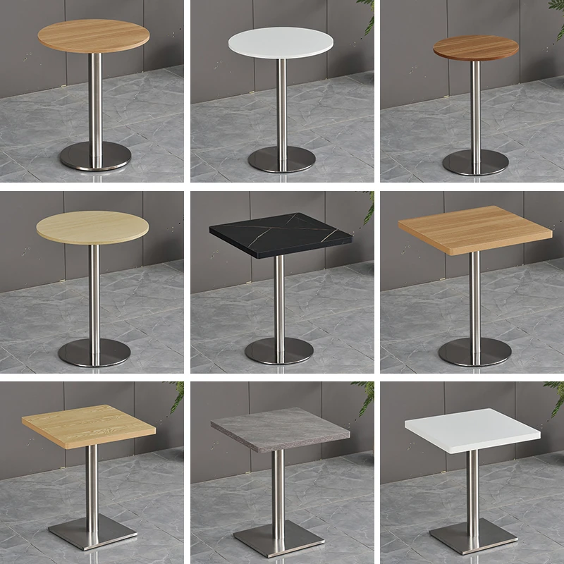 シンプルでおしゃれなカフェ用小丸テーブル|商談にも最適!モダンなスイーツ店やカフェにぴったりのステンレス製ベースの四角テーブル。お客様を引き寄せる魅力的なデザイン!