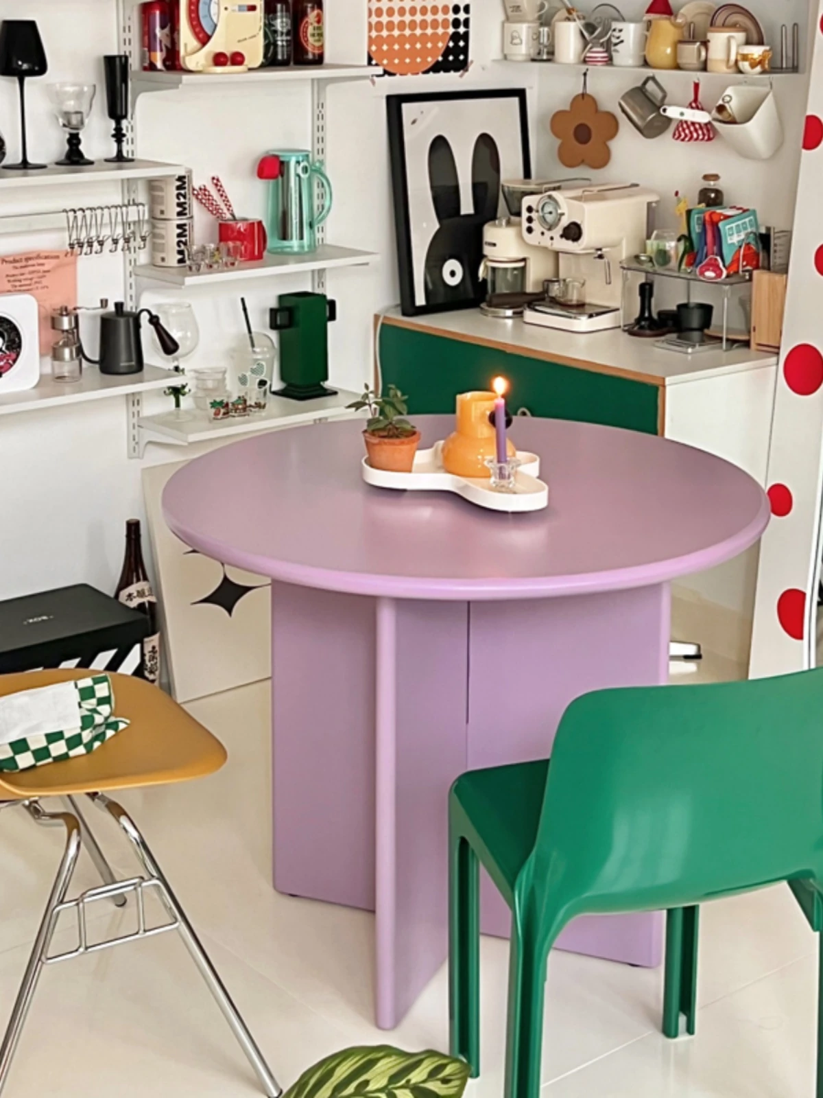 北欧スタイルのモダンでシンプルなレトロ円形ダイニングテーブル - 小スペースにもぴったりなメンフィス風おしゃれテーブル!家庭用や会話を楽しむひとときに最適。