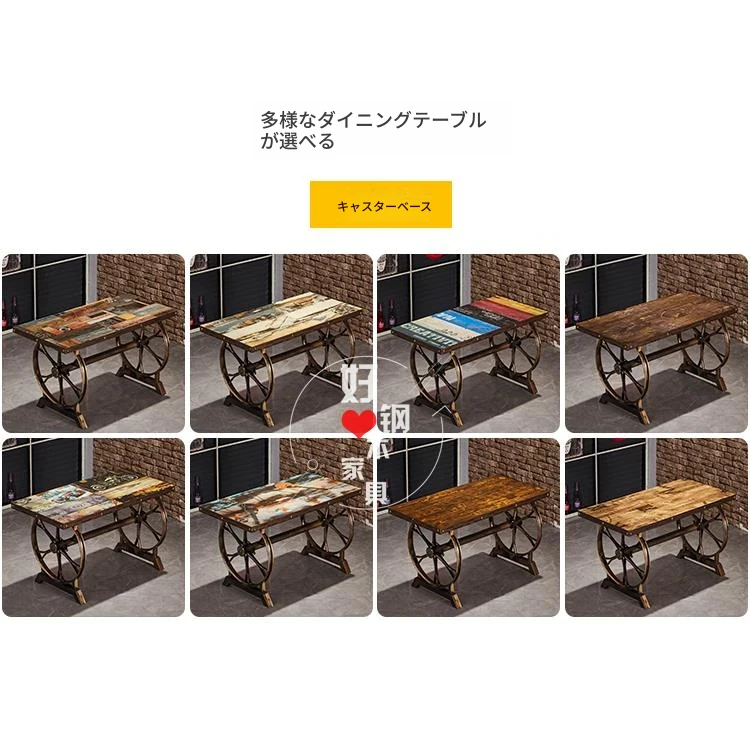 レトロ工業風テーマのカフェ・レストラン用テーブルセット!商業利用に最適なデザインで、焼肉や麻辣湯にもピッタリ。スタイリッシュで機能的な家具で、あなたの店舗を魅力的に演出します!