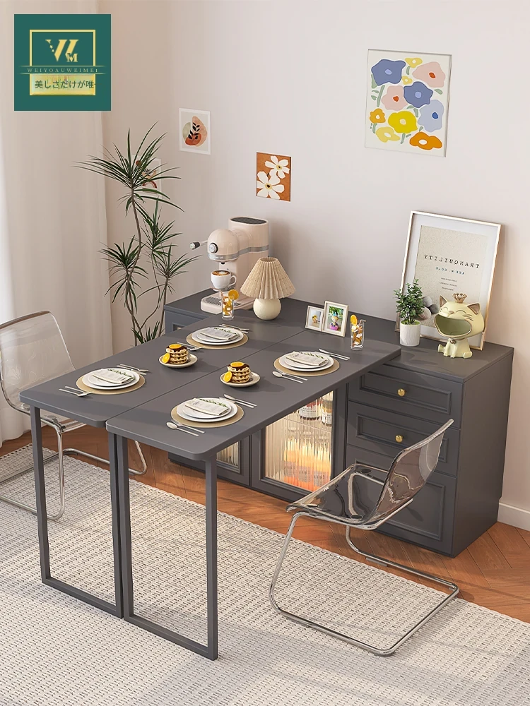 折りたたみ式ダイニングテーブル&サイドキャビネットセット|小スペース向けのシンプルで伸縮自在な回転ダイニングテーブル&チェア|おしゃれなバースタイルでも使える!