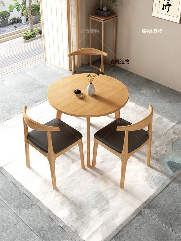 シンプルでモダンな無垢材の小さな円形テーブル - 家庭用・狭いスペースに最適なバルコニー用リラックスデスク、カードゲーム用テーブル、接待や商談にもぴったりな椅子セット!
