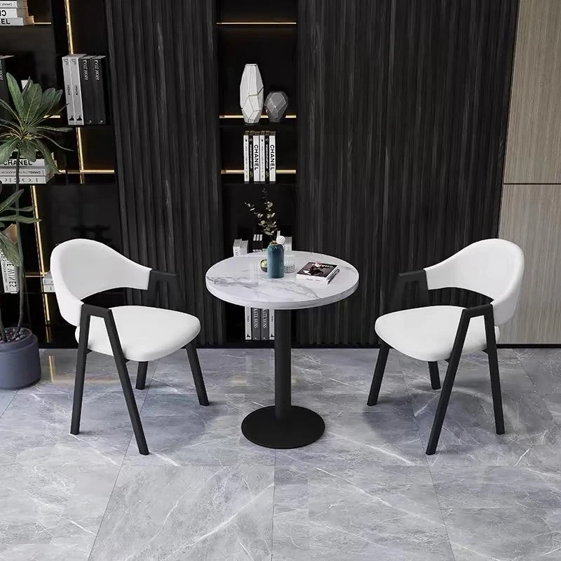 シンプルなデザインの談判テーブル&チェアセット - おしゃれな小丸テーブル!カフェ、スイーツ店、ミルクティーショップに最適!お客様を心地よく迎える、リラックスした空間を演出します。
