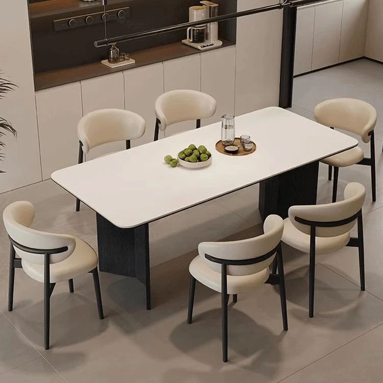 高級感溢れる無垢材ロックボードダイニングテーブル&チェアセット - イタリアンミニマルデザインの北欧スタイル、コンパクトな小型住居に最適!