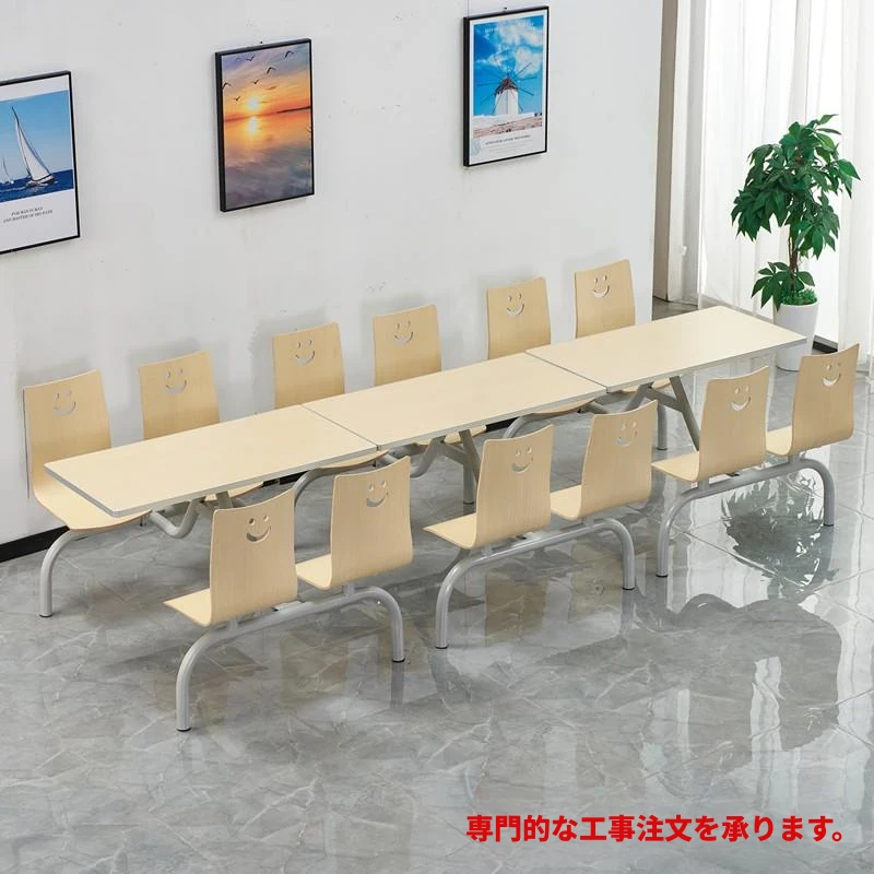 学校や会社に最適!4人用・6人用の連結ステンレス製ダイニングテーブルとチェアセット - 食堂やファーストフード店に最適な耐久性とスタイリッシュなデザイン!