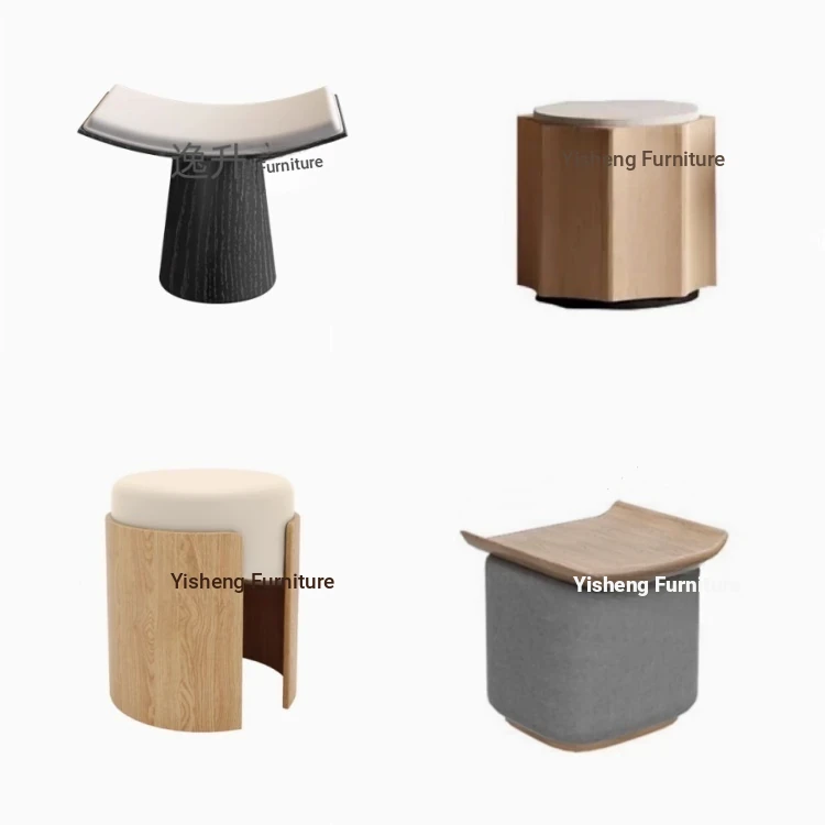 Modern Chinese Solid Wood Round and Square Stool - Minimalist Home Low Seating for Tea Rooms, Casual Tea Stools, Zen-inspired Shoe Changing Bench