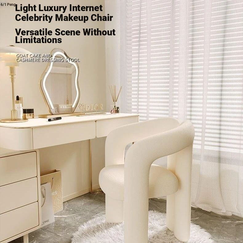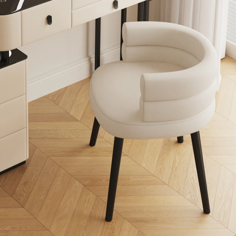 Modern Chic Dressing Table Stool for Bedroom - Ideal for Makeup and Nail Art, Stylish Cream Windbreaker Design for Your Cozy Space.
