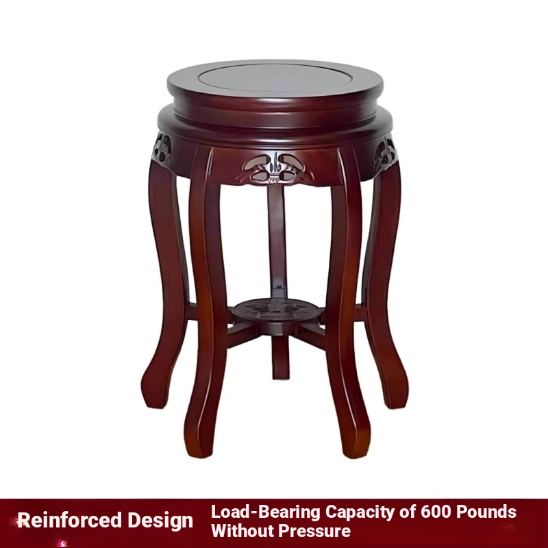 Solid Wood Stool - Vintage Style Chinese Antique Dining Table Chair, Drum Stool, Dressing Stool, Shoe Bench, Retro Round Low Stool for Living Room
