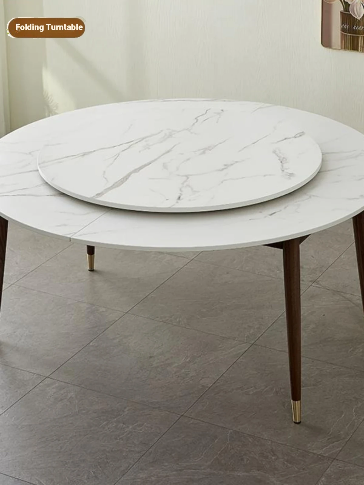 Foldable Round Dining Table - Solid Wood Home Use Walnut Finish - Spacious Surface for Family Gatherings and Entertaining
