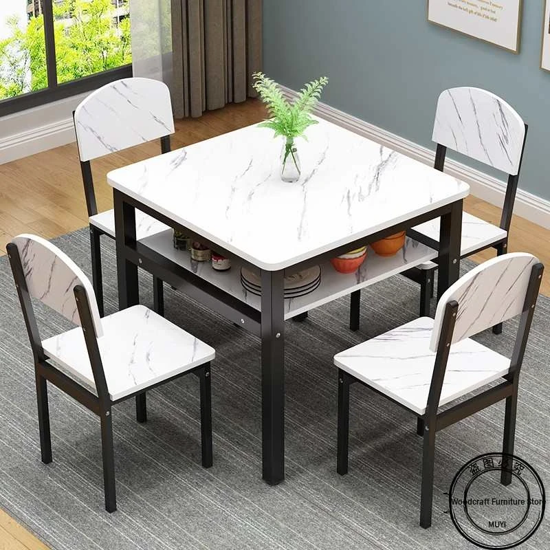 Stylish Minimalist Double-Layer Dining Table and Chair Set - Space-Saving Square Table for Small Homes, Perfect for Meals and Storage Solutions