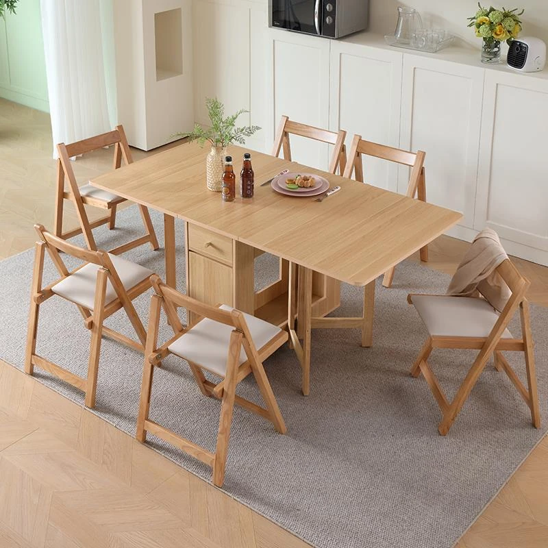 [Free Hong Kong Shipping] Solid Wood Folding Dining Table in Natural Color - Compact & Modern Design for Small Spaces with Convenient Storage Legs