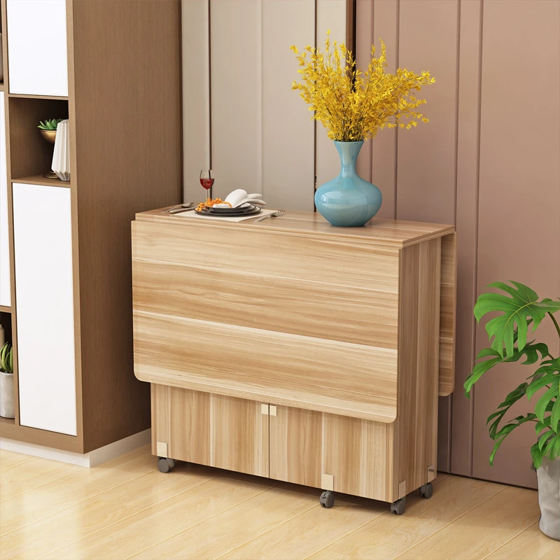 北欧スタイルの実木折りたたみダイニングテーブル|小スペース向け、収納力抜群のコンパクトデザイン!移動も簡単、多機能で使いやすい。家族や友人との食事を楽しむのに最適なアイテムです。