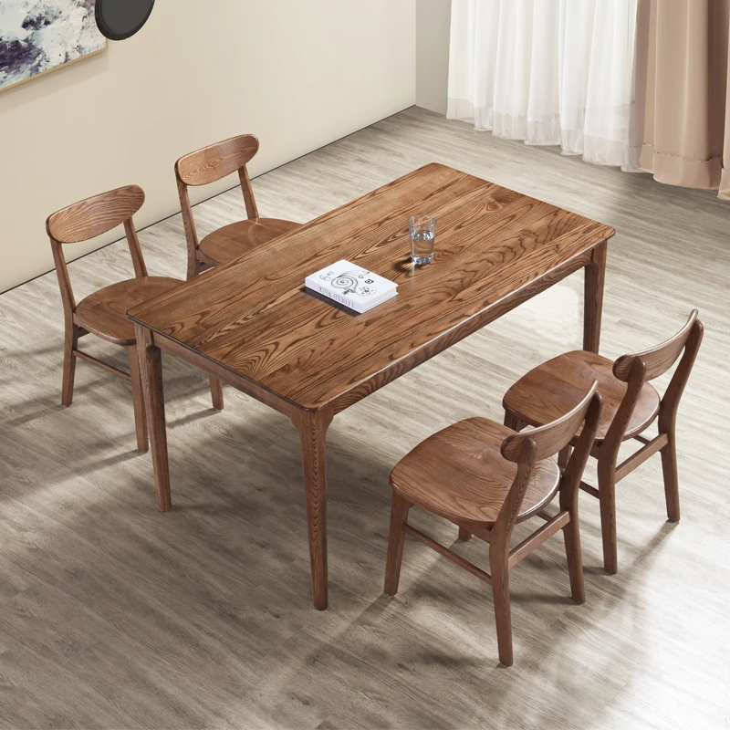 無垢材質の長方形ダイニングテーブル|小型住宅に最適な木製テーブルセット|飲食店やバー、食堂にもぴったりの快適なダイニング体験を提供します!