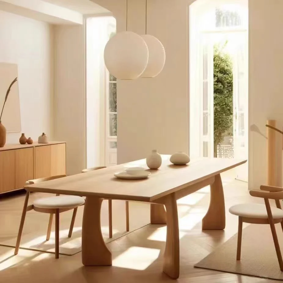 クリーム風の無垢材ダイニングテーブル - モダンでシンプルなデザイン、オリジナルの長テーブルと椅子のセット。洗練されたクリエイティブな会議テーブル、極限のミニマリズムを実現!