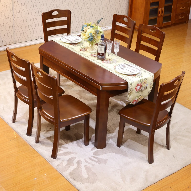 【特価】モダンシンプルな伸縮式実木ダイニングテーブルセット!小型住宅に最適な6人用角型・丸型ダイニングテーブル&チェアのコンビ。折りたたみ可能で、スペースを有効活用!送料無料でお届け!