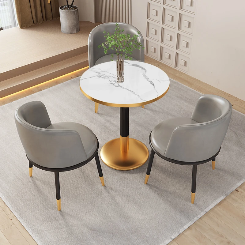 モダンシンプルな談話テーブル&チェアセット|商業用・カフェ・ティールームにも最適!リラックスできるバルコニーやオフィスの応接スペースにぴったりな小さな円形テーブル。お客様を心地よくお迎えするための理想的な選択!