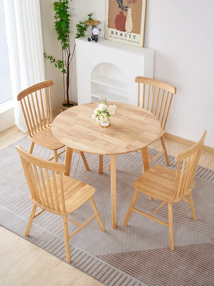 北欧風の天然木製小円卓 - 家庭用・狭いスペースに最適なダイニングテーブル、バルコニーやリラックスした雰囲気でのカードゲームにもぴったり!接客や打ち合わせにも使えるスタイリッシュなテーブルセット。