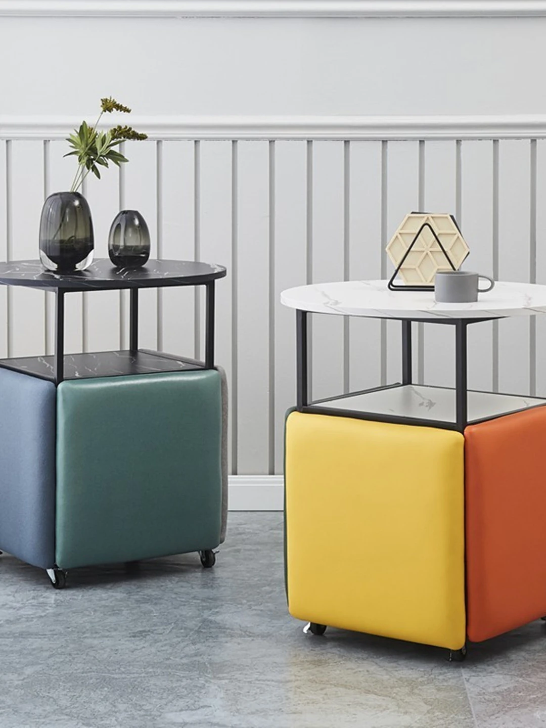 インフルエンサー風の大理石デザイン!スイーツやタピオカにぴったりのシンプルな四角テーブル&小丸テーブル。おしゃれなカフェスタイルの長方形テーブルで、どんな空間にもマッチします!