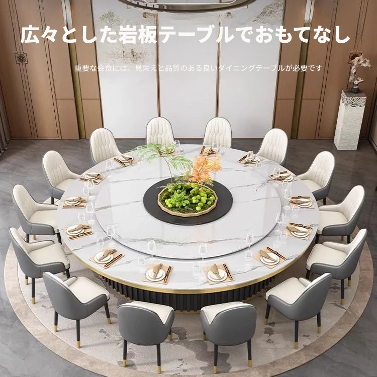 電動ロックプレート付きホテル用大円卓 - 回転式電磁炉火鍋テーブル!10人から50人まで対応可能、多人数の宴会やパーティーに最適!おしゃれで便利なダイニング体験をお楽しみください!