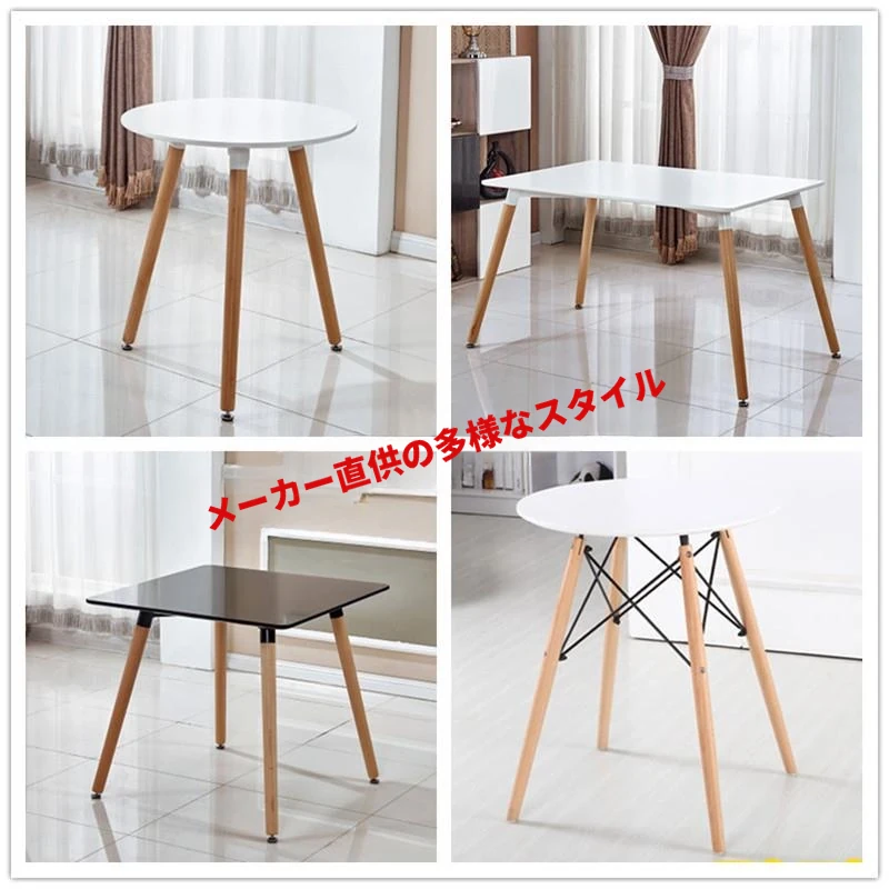 イームズ北欧スタイルのシンプルな無垢材脚の小型ダイニングテーブル、円形・四角形の選べるデザイン!小さなスペースに最適で、リラックスしたひとときを演出するカフェテーブルとしても活躍!