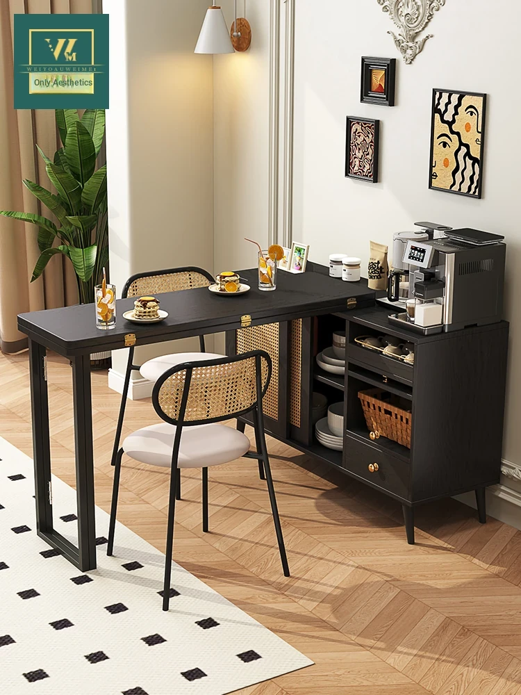 Elegant Vintage Folding Dining Table Set for Small Spaces - Versatile Expandable Table with Chairs and Integrated Side Cabinet, Perfect for Cozy Homes and Stylish Bars.
