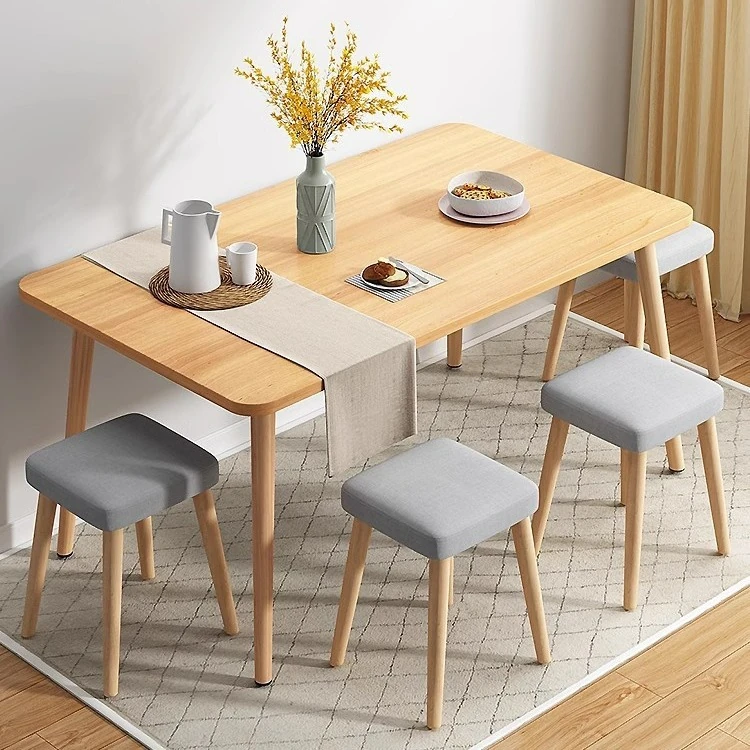 Modern Rectangular Solid Wood Dining Table Set for Small Spaces - Minimalist Style Furniture for Home and Restaurants
