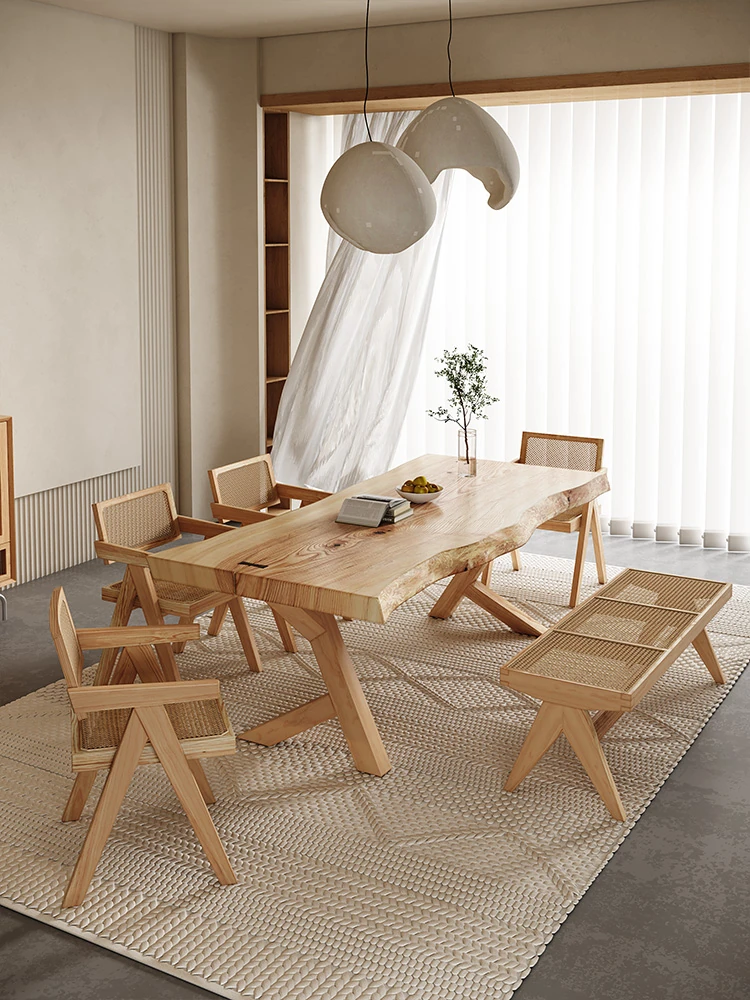Wabi-Sabi Style Solid Ash Wood Desk - Rustic Minimalist Home Office Table, Perfect for Tea Ceremony & Dining, Ideal for Cozy Guesthouses and Artistic Spaces