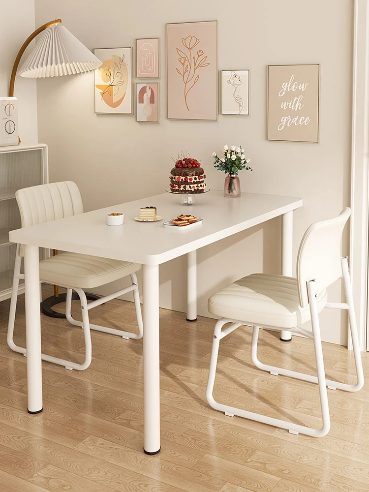 Modern Minimalist Cream Dining Table Set for 2 - Rectangle Small Apartment Table and Chairs Combo for Cozy Spaces